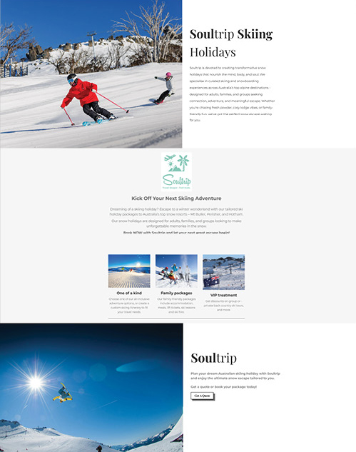 I created a landing page design for Soultrip’s Skiing Holidays concept campaign, mirroring the Performance Max ad with matching imagery and keywords for consistency. Designed to maximise conversions, it includes clear CTAs and a lead capture form to drive engagement and gather valuable customer insights – aligning with the campaign’s objectives – driving engagement and encouraging user action.